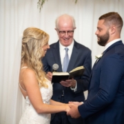Our officiant was Charlie Cooper, and I can’t recommend him enough. He was so great and easy to work with. He was really kind and took time to know us as a couple so that he could incorporate tidbits about us in his statement. He was incredibly professional and kind. He was also super helpful with the wedding certificate – sending it in to the state (PA) so that we could later have my name changed. It saved us a step! Charlie is amazing and I can’t recommend him enough!