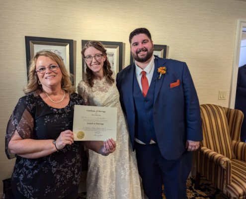 On behalf of Jared and myself, we wanted to thank you again for marrying us on Nov 2. We couldn’t have asked for a better day. You truly poured your heart and soul into our ceremony making it genuine, personal and heartfelt. We had multiple comments on how great it was and everyone loved the poem as well.