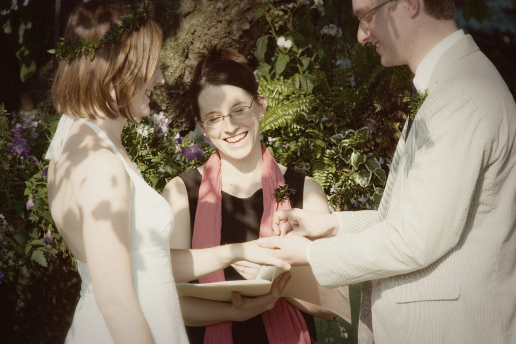 Kelly respects and honors committed relationship as a spiritual vocation which is given strength and support through the celebration day. She is gifted at making others comfortable and finding the right words to capture the emotions present, and feels very blessed to have work that makes good use of these gifts. Often times after her ceremonies, guests of the couple will remark that it seems Kelly must have known the couple for years to have reflected them so well in her words.