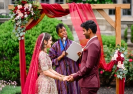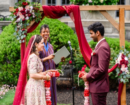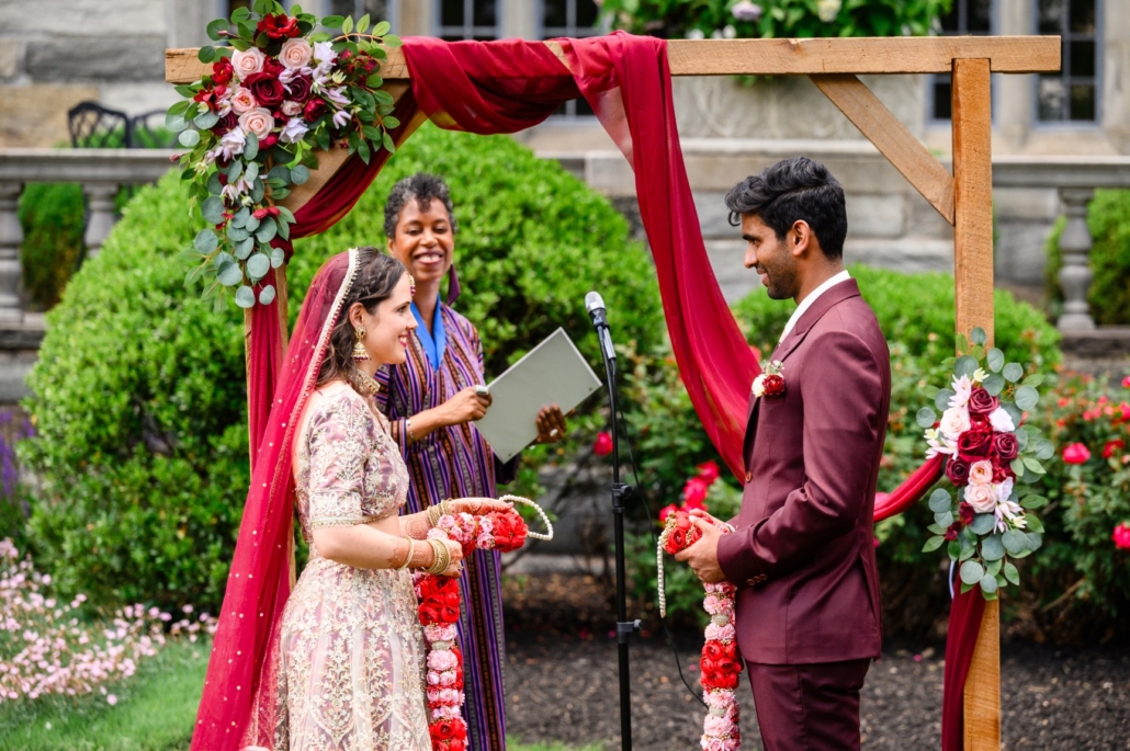 During the wedding planning process, we met with her in person to ensure we were a good fit, ask questions, receive more information about how our ceremony script would be crafted. From there, Naila made sure to keep in touch in the months leading up to the wedding, and collaborated with us to made a script for the ceremony. We ended up creating a gorgeous ceremony script that really reflected us as a couple. Naila could not have been more of a superstar on the wedding day. Her calming presence and poise helped us stay grounded before the ceremony, and during the ceremony she really shined and her years of experience were evident. We received so many compliments on how beautiful our ceremony was and how much everyone loved Naila.