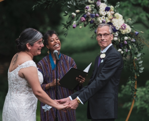 We are so happy we reached out to you to be our wedding officiant. The ceremony came off beautifully and exactly as we all envisioned it together. We received many comments and compliments about you and how the ceremony had a little bit of everything: storytelling, spirituality, humor, soul, artistry, and a beautiful setting. You were obviously instrumental in designing and developing the ceremony, but also, your preparation, delivery, and style as officiant was crucial for bringing it all off. There are no words for how much we appreciate your role except to just say thank you for being you. You killed it!