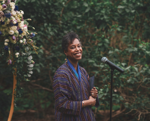 But who wouldn’t swoon at the chance to bask in the beauty and sweetness of a couple’s connection as they plan one of the most meaningful days of their life together? It is this mix of reverence and joy that Naila brings to officiating, as well as an easy warmth rooted in her Caribbean upbringing.