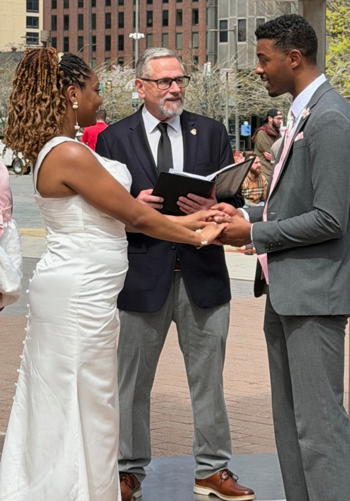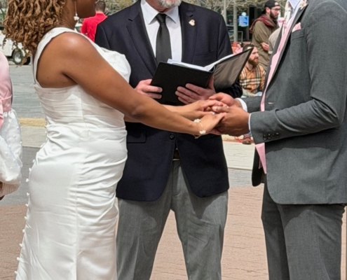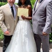 Thank you so much for officiating our wedding. You helped us navigate a new process—getting legally married! Your scripts were fantastic, and we love the prompts you gave. It was a beautiful way to reflect our relationship. We loved our ceremony!