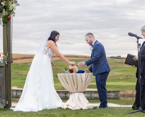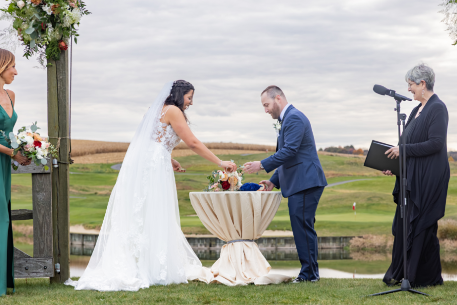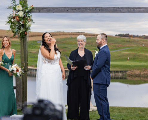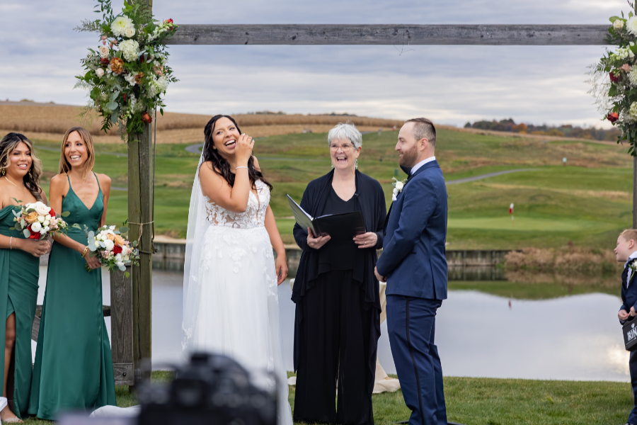 We wanted to thank you so much for the beautiful ceremony that you gave us. Honestly, the rest of our wedding was pretty hectic and my memories of the reception already blur together, but our ceremony will stand out in my memory for the rest of my life. You made us feel so comfortable as you guided us through the ceremony, that we were able to really feel present in the moment. We can’t thank you enough for your heartfelt words during the ceremony and for your kindness and patience as we planned everything out in the last few weeks before the wedding. We couldn’t have asked for a more beautiful and personal ceremony. We both agree that choosing you as our officiant was one of the best wedding planning decisions that we made!
